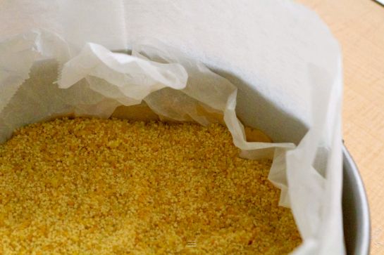 3. Ofen auf 180° C vorheizen. Teig rund ausrollen (auf ca. 28 cm). Backform mit Butter einfetten. Den Teig in die Form geben und mit einem zerknüllten Backpapier und Reis oder rohen Hülsenfrüchten ca. 15 vorbacken. Danach mit dem Eiweiß bepinseln.